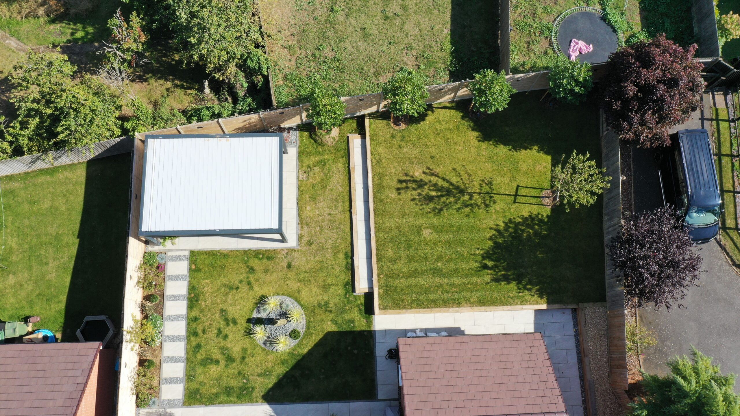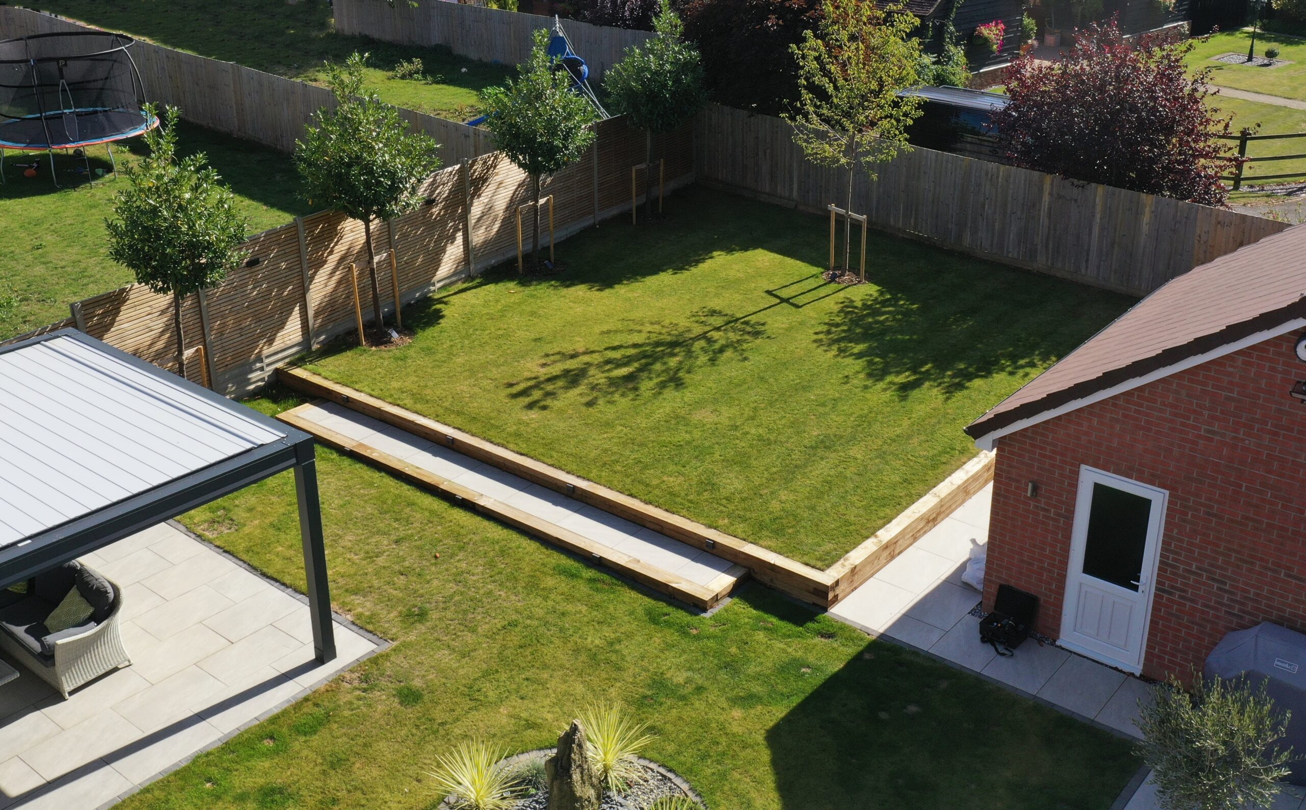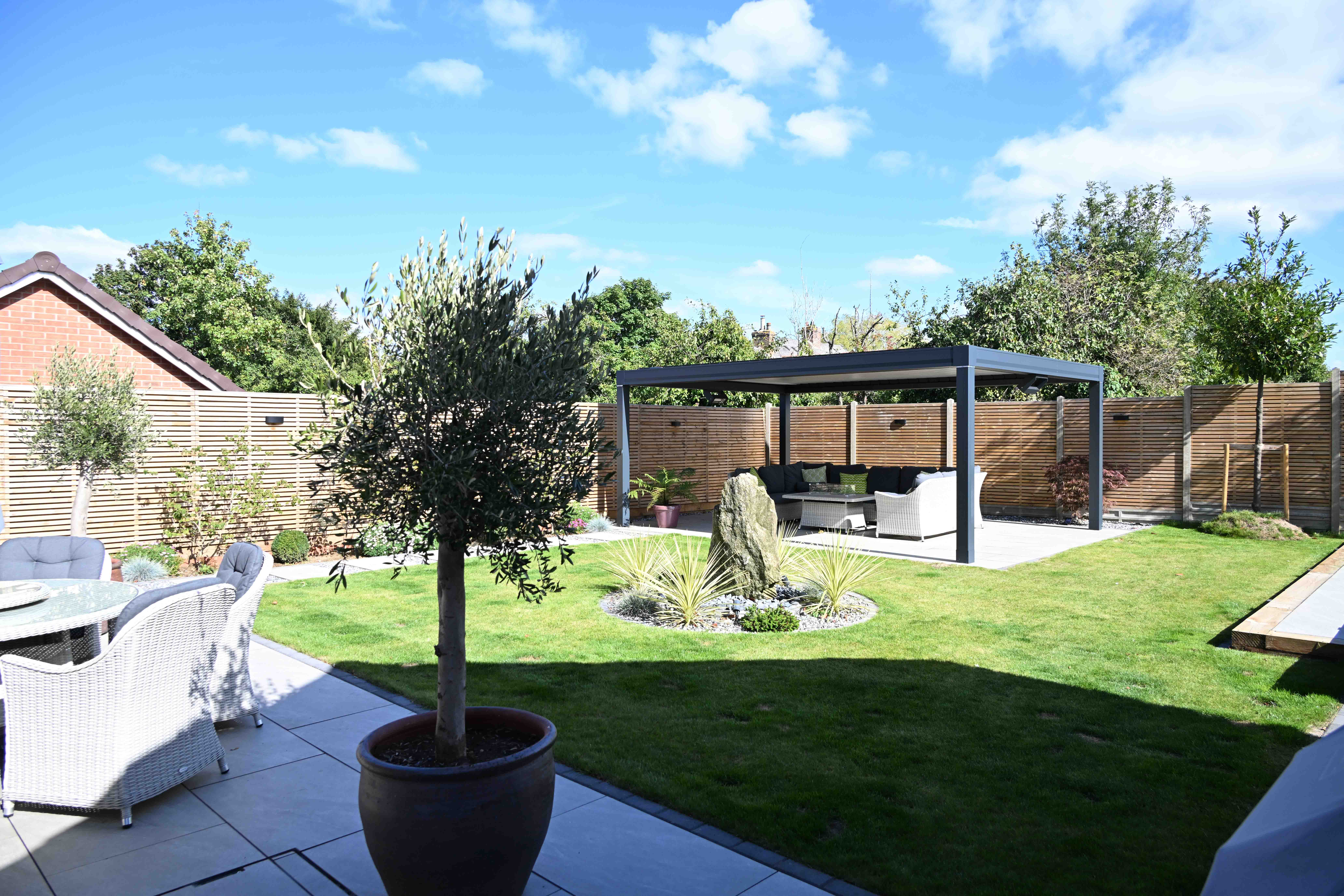 We completed the planting plan for the garden with multi-stemmed Amelanchier and Cornus kousa trees as well as a specimen Japanese Acer to the boundary next to their paved dining area.