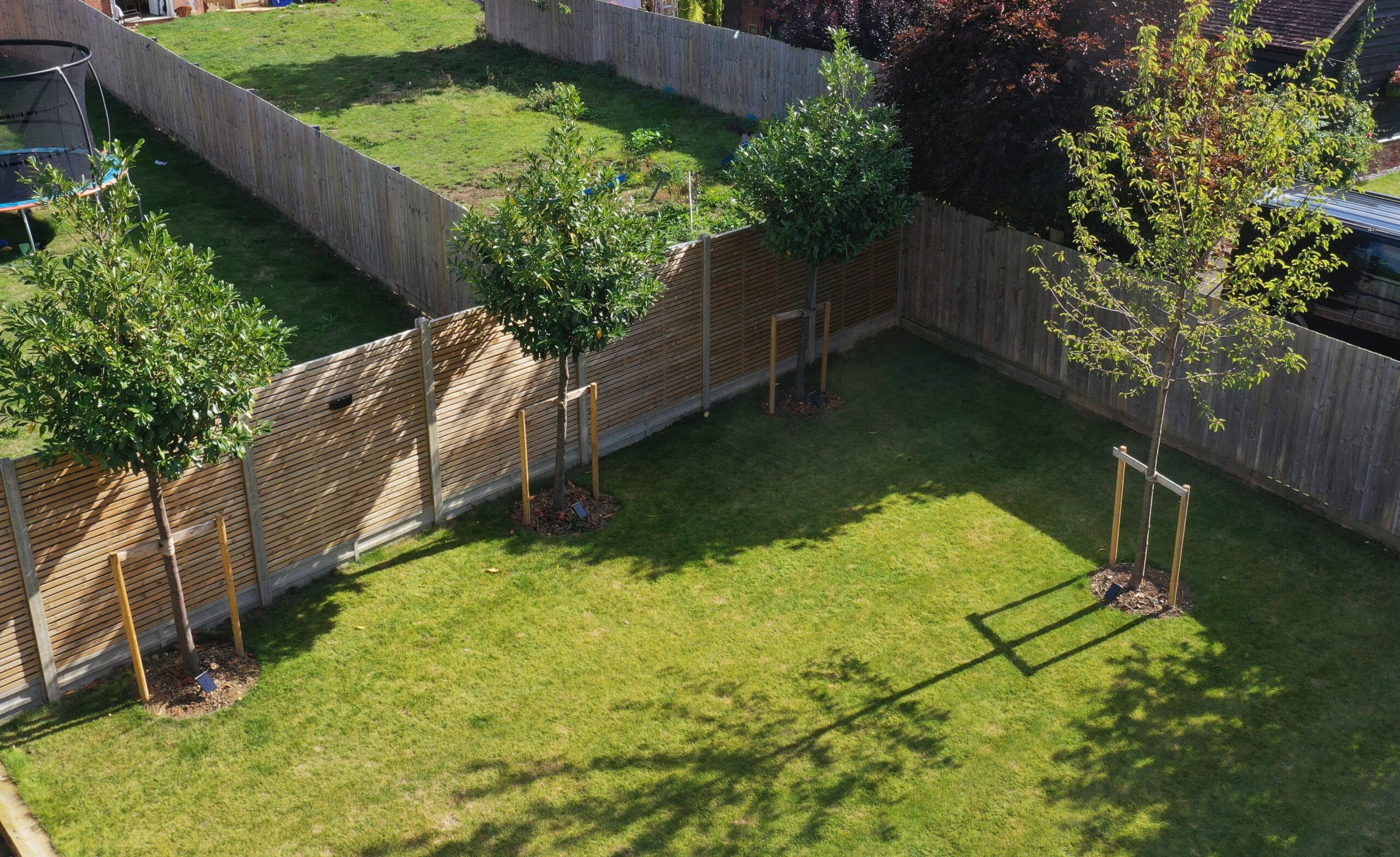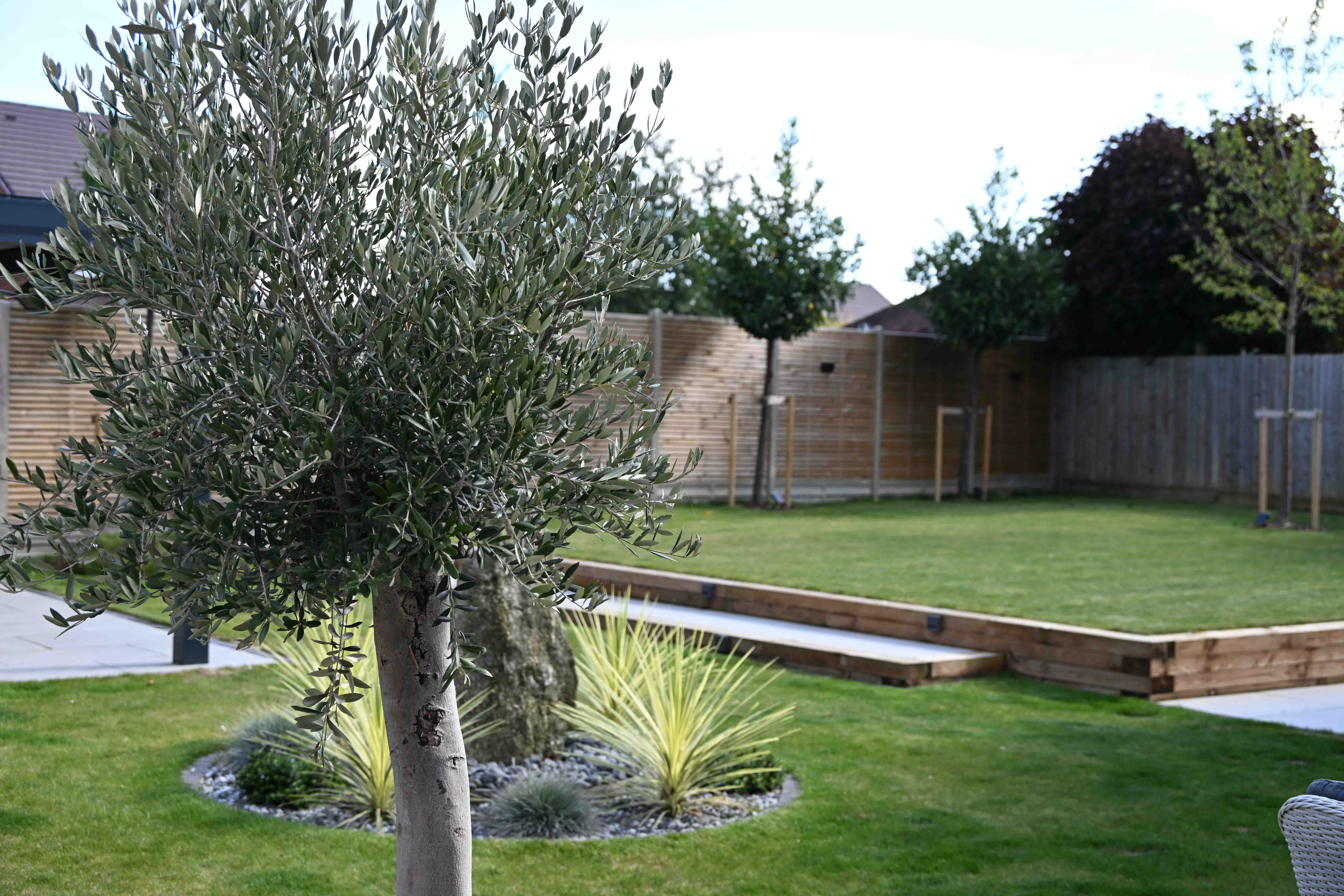 We suggested the standard Prunus laurocerasus ‘Caucasia’ as the perfect option to give them a hardy tree offering dense attractive evergreen screening properties alongside a delicate white blossom.